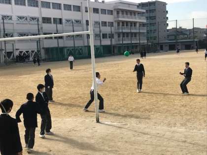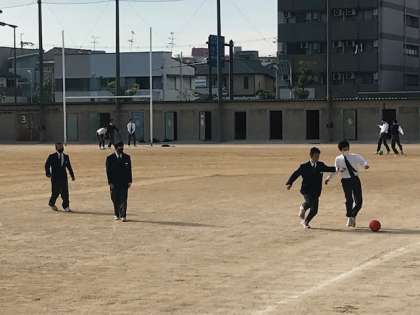 寒さなど関係なく、グランドでボール遊びしている生徒がたくさんいます