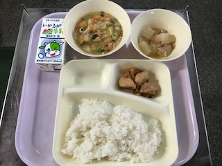 鶏肉の甘辛焼き・みそ汁・だいこんの煮もの・ごはん・牛乳