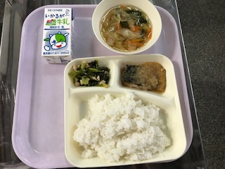 さばのみぞれかけ・すまし汁・こまつなの煮びたし・ごはん・牛乳