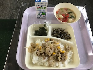 れんこんのちらしずし・ぞう煮・ごまめ・ごはん・牛乳