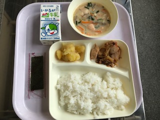 鶏肉の甘辛焼き・かす汁・くりきんとん・ごはん・牛乳