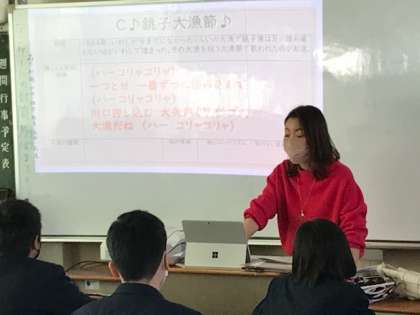1年1組の英語、2組の国語、4組の音楽です
