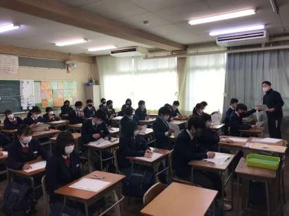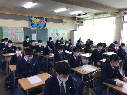 3年生、校内最後のテストが始まりました。理科からスタートです。3年1/2組のテスト前の様子です。