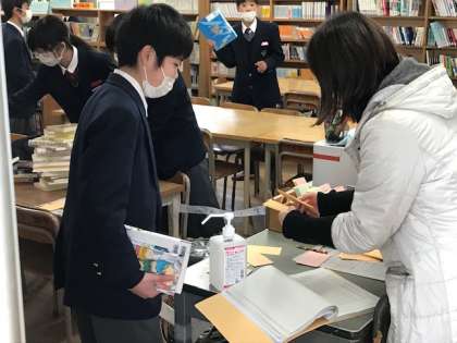 ボールで遊ぶ生徒、図書室で本を借りる生徒、様々です
