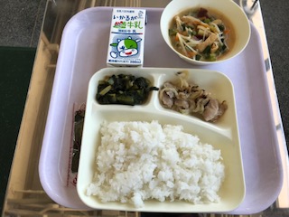 鶏肉のゆず塩焼焼き・みそ汁・こまつなの煮びたし・ごはん・牛乳