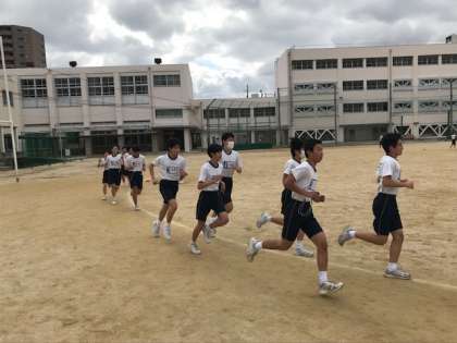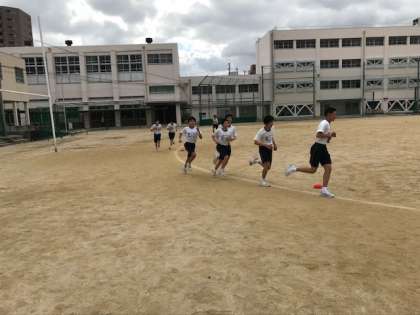 2年3組4組の男子体育です。今日は男女合同で10分間走をしています。