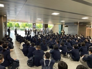 ・いよいよ今日から3日間、3年生の信州・白馬方面への修学旅行です。新大阪駅での出発式のようすです