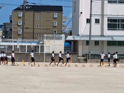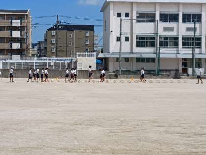 ・陸上部の練習の様子です。水分をとりながら、暑さに負けず頑張っています。