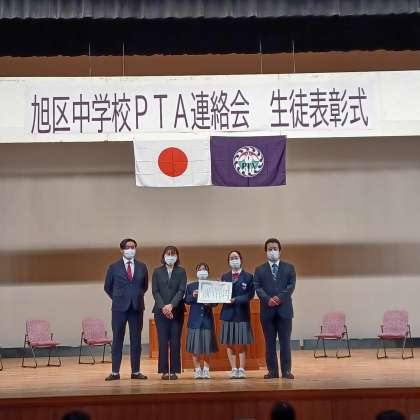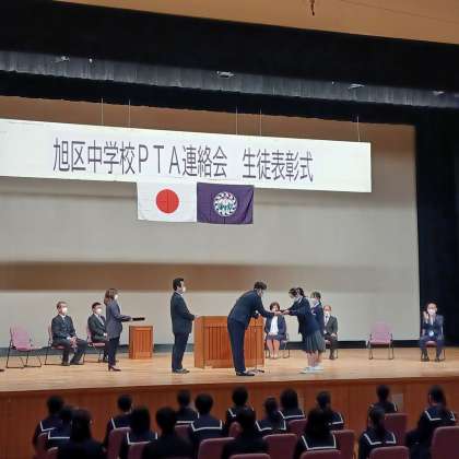 ・11月5日(土)に旭区民センターおいて、旭区中学校生徒表彰式があり、旭東中学校では、家庭科部が表彰されました。