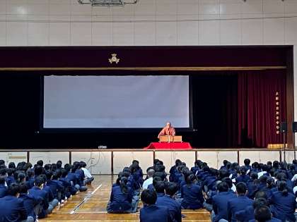 ・今日は、落語家 桂福点さんに来校していただき、落語を聞いたり、体験したりしました。