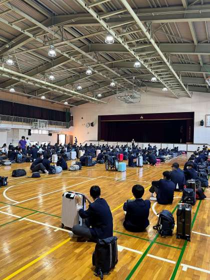 ・今日から、3年生は2泊3日の修学旅行です。元気に出発しました。