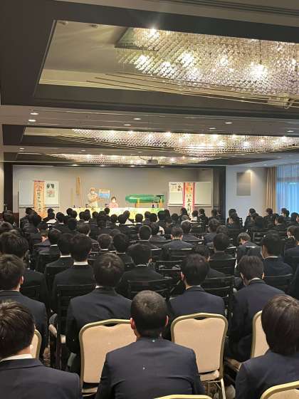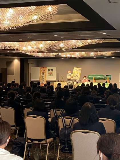 ・無事、宿舎に到着しました。宿舎での戦争体験講話です。(平和学習)