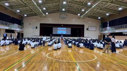 ・校内では、講師の方に来校していただき、「制服に関する話」を1、2年生にしていただきました。