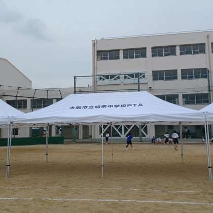 ・昨年、旭東中学校PTAに購入していただいたテントです。大変組み立てやすく助かっています。