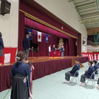 ・今日は、卒業証書授与式が行われました。卒業証書授与式の様子です。