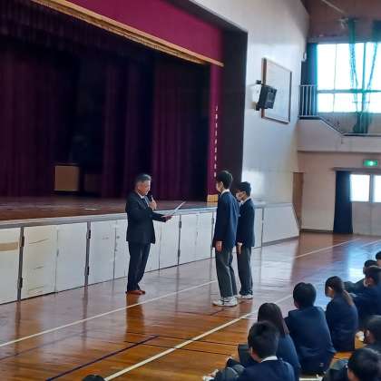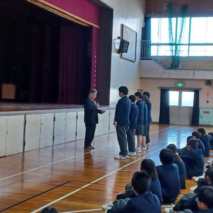 ・修了式、生徒会認証式、部活動の表彰の様子です。