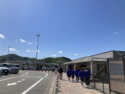 ・京丹波PAでトイレ休憩です。14:35に出発し、予定通り15:30に学校に到着予定です。