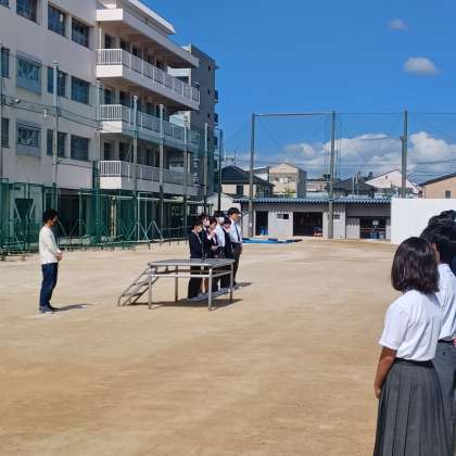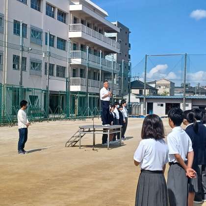 ・今日は、晴天のなか全校集会、表彰を行いました。