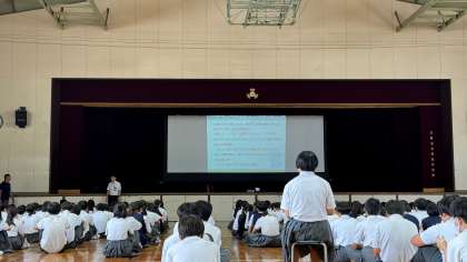 ・今日は、旭警察の方に来校していただき、非行防止・薬物乱用防止教室を実施しました。