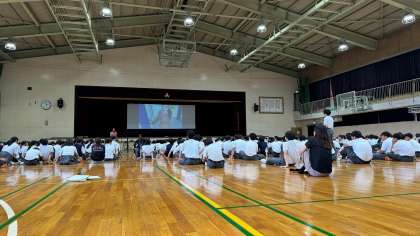 ・今日は、講師の方に来校していただき、平和学習を実施しました。