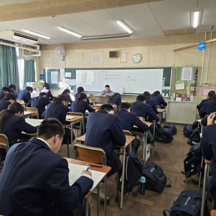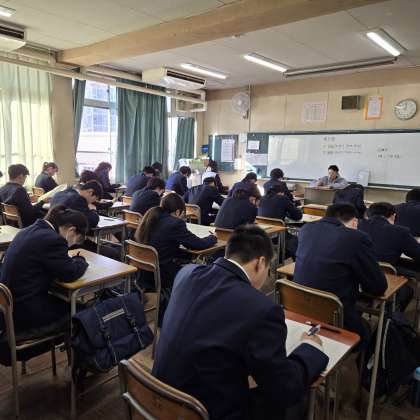 ・3年生の実力テスト2日目です。頑張っています。