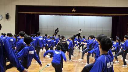 ・講師の方に来校していただき、3年生で2回目のダンスの授業を行っています。