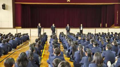 ・今日から新年度が始まりました。始業式、着任式、表彰、対面式を行いました。