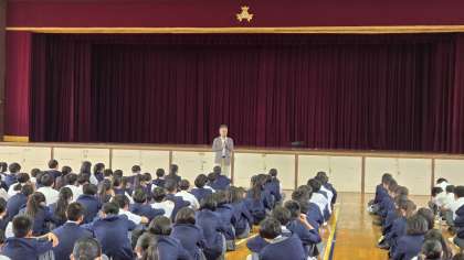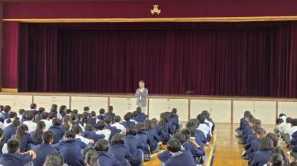 ・今日は、「いじめ・いのちについて考える日」としています。全校集会で校長先生から話をしました。
