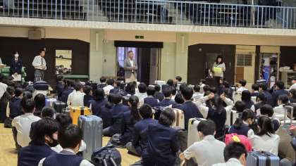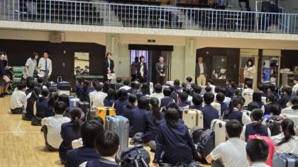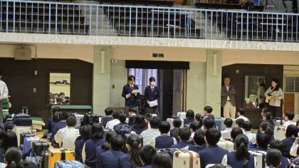 ・いよいよ今日から3年生修学旅行です。出発式の様子です。