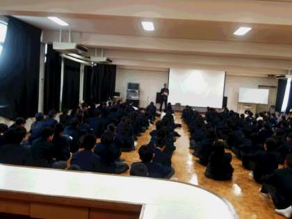 12日火曜日に、生徒向き修学旅行の説明会がありました。大図書室で学年主任の山崎先生から修学旅行の目的・日時・場所・行程・服装・持ち物などの説明がありました。みんなすごく楽しみにしています。