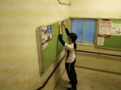 先週、体験入学や高校見学会に参加するための手続きの説明がありました。南館の東階段には高校・専修学校などの掲示物も増えています。より良い進路を実現させるように、必要な学校は見学にいきましょう。