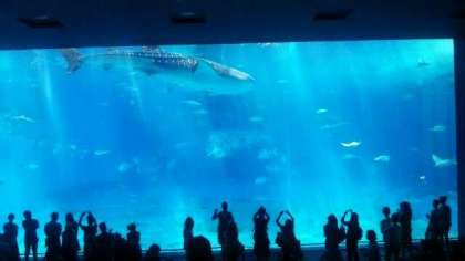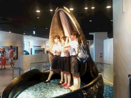 水族館では、大水槽での見物や展示物前での記念撮影など楽しそうに見て回っています。。