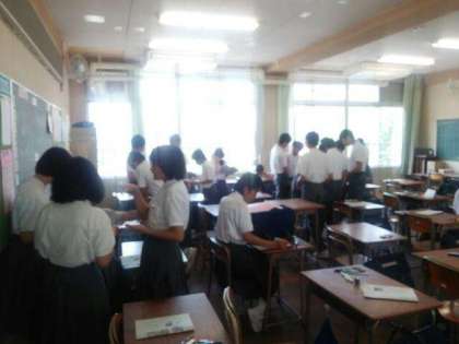 3年生にとっては、全国学力学習状況調査につづいて2回目となります。みんなしっかり真剣に受けていました。休み時間もみんなで集まってテストの話をしていました。