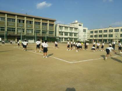 後半、男子が運動場「ドッヂボール」、女子が体育館「バスケットボール」