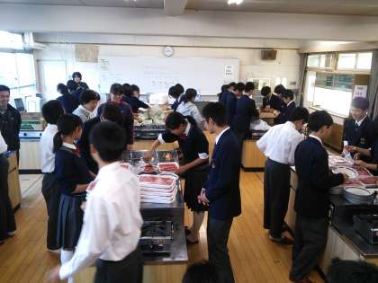 バスの車内でのレクレーションや班行動の準備や、昼の野外炊飯の