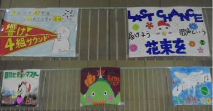 文化発表会に向けて、各学級で学級旗を作成しました。どの学級も個性的な旗が仕あがっています。体育館のギャラリーあります。