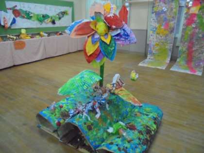 光陽支援学校から毎年作品を展示しています。独創的な作品です。