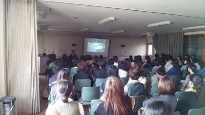 5月9日10日に行われる一泊移住の説明会を行いました。入学後の最初の大きな行事になります。スライドをまじえての説明でした。