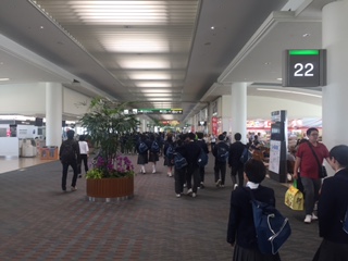那覇空港に到着しました。天候は、曇り。気温は、不明ですが、暑いです。