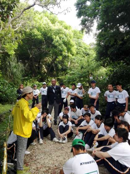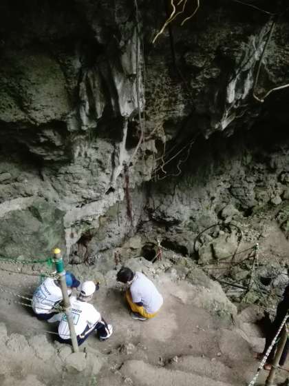 ガマで現地の方から話を聞き、暗いバマを体感しました。