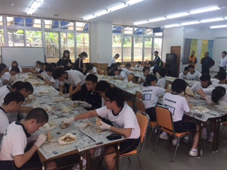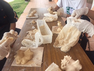 朝早くは、少し雨が降っていましたが、今は曇り空です。しかし、風が強く吹いていますので、マリンスポーツを「シーサづくり」に変更しました。