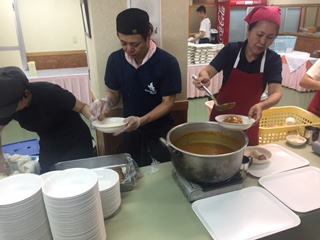 少し早い昼食を食べました。メニューは、ハンバーグカレーです。食事後は、美ら海水族館に向かいます。