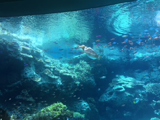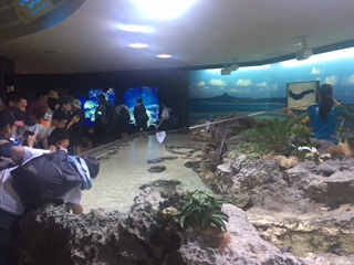 美ら海水族館では、魚の種類の多さや大きさに驚いていました。