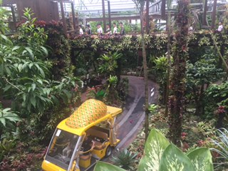 ナゴパイナップルパークに到着しました。様々なパイナップルでいっぱいです。ひとりずつ、パイナップルスティックを食べて満足そうでした。