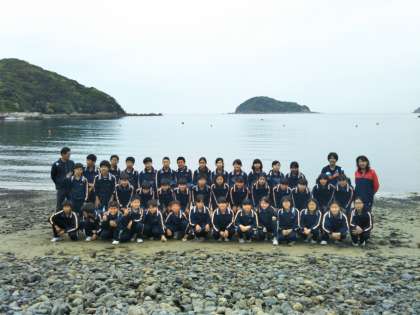 天候は曇りで、何とか雨にならず、持っています。海を背にして、学級写真を撮って、昼食です。