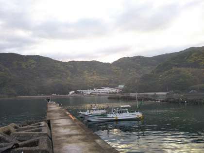 朝早くから堤防では魚釣りの人もいます。