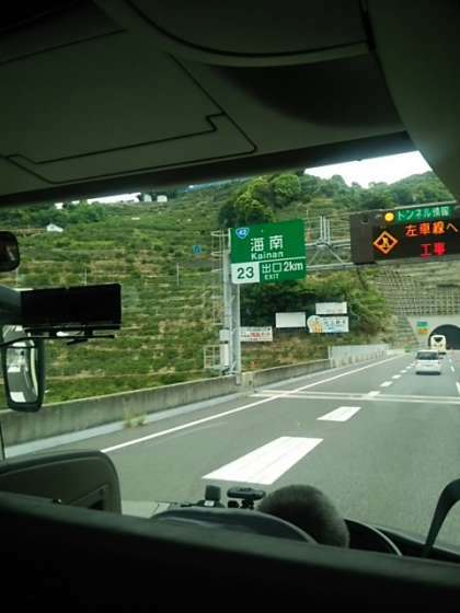 阪和自動車道にのりました。海南市です。バスの中はまだまだ元気です。