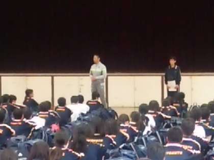 帰校式。教頭先生と学年主任の先生から最後のお話しがありました。