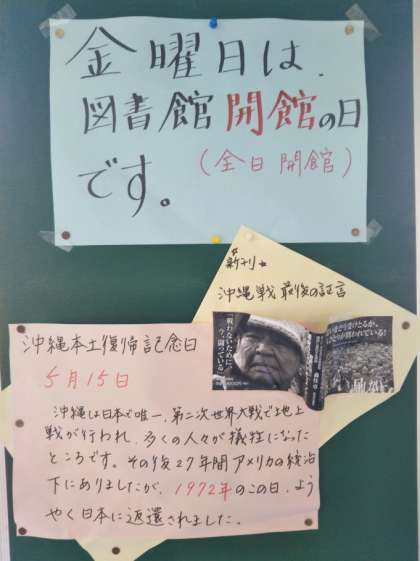 少し落ち着いて、学校の図書館で読書でもどうでしょうか。興味の湧く本がみつかるかもしれません。金曜日以外も開館しています。
