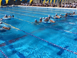 水泳大会では、泳ぎが得意な生徒、そうでない生徒も、みんなが力いっぱい泳いでいました。また、クラスを一生懸命に応援する姿も見ることができ、素晴らしい大会になりました。